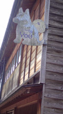 道端で見つけました。犬のカタチの看板で、「わんわん美容室」って書いてました かわいー
